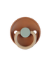 As chupetas FRIGG têm uma ligeira curvatura para afastar a chupeta da pele delicada do bebé e duas aberturas para ventilação.