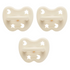 Por este motivo, a Hevea lançou a os conjuntos de experimentação Trio. Nesta caixa encontrará 3 chupetas Hevea 0-3 meses , e cada uma com uma tetina de látex com uma formato diferente :
